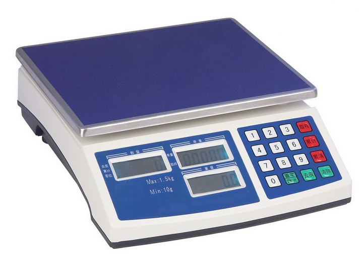 當(dāng)承重盤上放置質(zhì)量為 5kg的物體時(shí),只要用質(zhì)量為1kg的增砣放在增砣盤上,就可以使秤處于平衡狀態(tài)。電子桌秤的稱量有1kg、3kg、6kg和15kg4種,相應(yīng)的型號為AGT-1型、AGT-3型、AGT-6型和 AGT-15型。這種秤準(zhǔn)確,使用維修方便,因而應(yīng)用很廣。